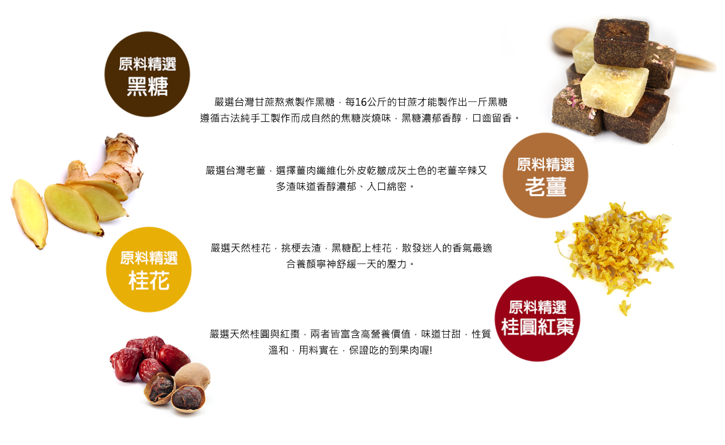 嚴選台灣老薑製作,真材實料,黑糖養生