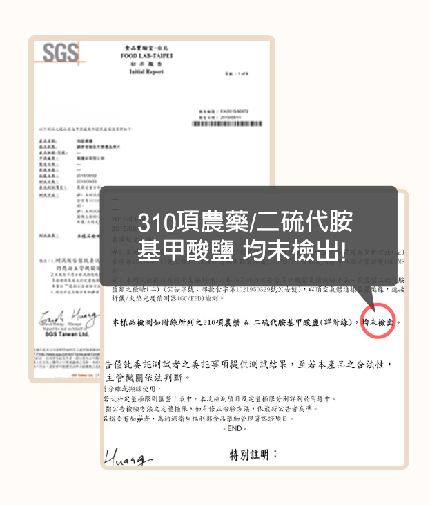 零塑化劑、零農藥無殘留-2015通過SGS合格